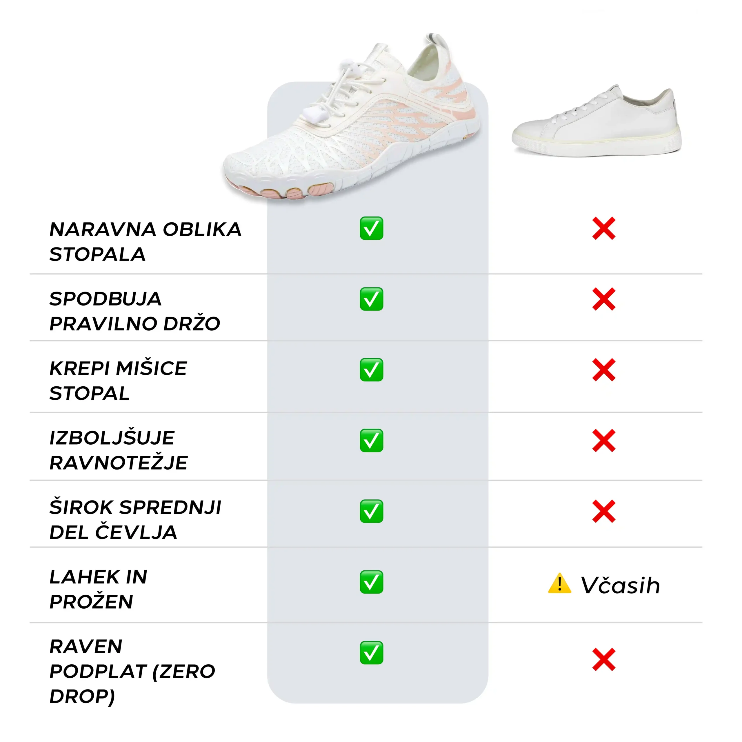Ti čevlji so resnično presegli moja pričakovanja! Na začetku sem potrebovala nekaj dni, da sem se navadila na njihovo lahkotnost in prožnost ampak sedaj jih ne bi zamenjala za nič. Že v nekaj tednih so olajšali bolečine v stopalih, s katerimi sem se nekoč borila.