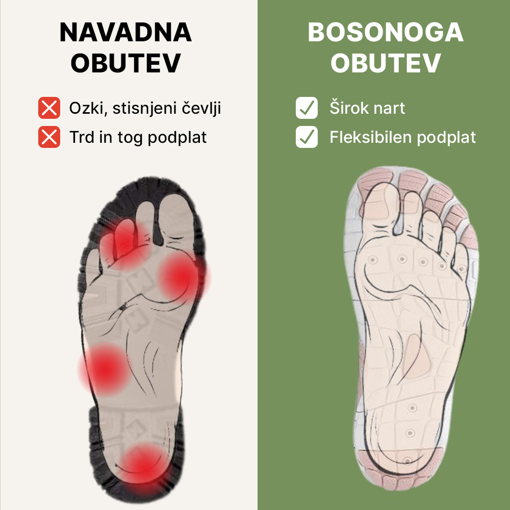 Izkusite pravi občutek bosonoge hoje in naravnega stika s tlemi.