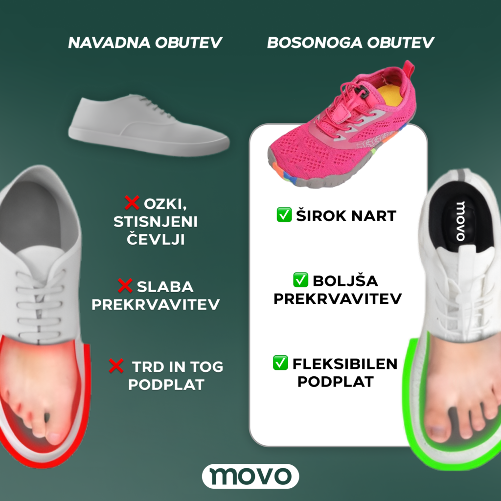Ko se odločite za bosonoga obutev MOVO se odločite za udobje, zdravje in naravno izkušnjo hoje. Ta edinstvena obutev otrokom omogoča občutek bosonoge hoje, hkrati pa zagotavlja potrebno zaščito pred zunanjimi vplivi in podporo stopalnemu loku.