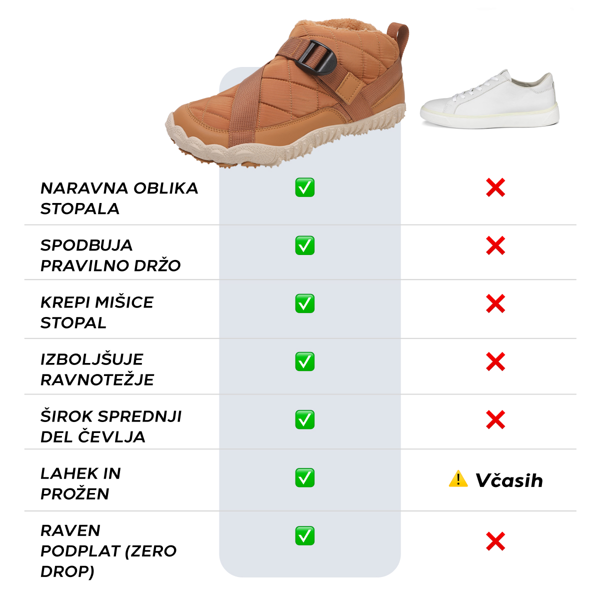 Zaradi širokega narta in dodatnega prostora pri prstih je hoja precej bolj udobna in naravna – super čevelj.